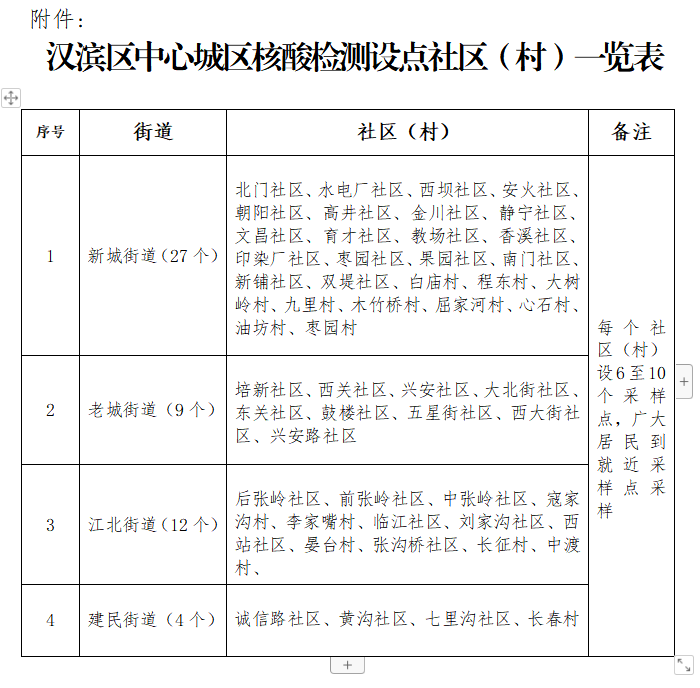 附件:漢濱區(qū)中心城區(qū)區(qū)域核酸檢測(cè)設(shè)點(diǎn)社區(qū)(村)一覽表