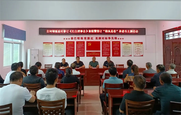 近日,板廟村組織村干部、黨員、群眾代表齊聚新時代文明實踐站,共同學(xué)習(xí)《村規(guī)民約》并就“紅白理事會”規(guī)章制度進行補充修訂。會議現(xiàn)場,大家各抒己見針對如何有效遏制紅白喜事比闊氣,倡導(dǎo)厚養(yǎng)薄葬,切實減輕人情負擔等當前熱點問題進行了討論,而后通過舉手表決補充修訂了“紅白理事會”規(guī)章制度,并于現(xiàn)場莊嚴簽訂了移風(fēng)易俗承諾書。