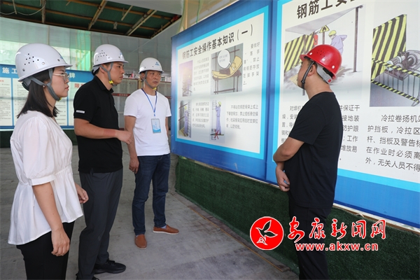 監(jiān)督檢查組在建筑施工現(xiàn)場了解企業(yè)落實(shí)安全責(zé)任情況