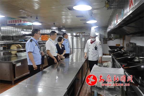 監(jiān)督檢查組在安康賓館后廚操作間了解燃料規(guī)范使用情況