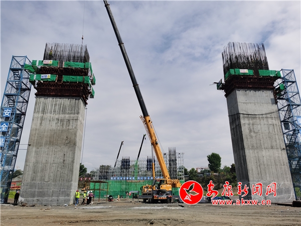 6月22日,新關(guān)廟漢江大橋左幅12號橋墩封頂,該組右幅橋墩也將于明日封頂。 (通訊員 鄭才林)