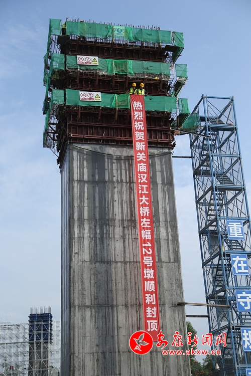 新關(guān)廟漢江大橋左幅12號橋墩封頂