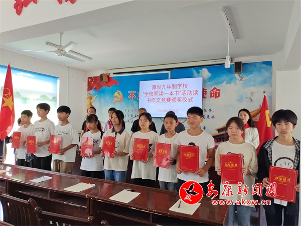 當(dāng)天,安康市書(shū)香少兒讀書(shū)會(huì)攜手愛(ài)心人土,在譚壩九年制學(xué)校舉行了“全校同讀一本書(shū)”活動(dòng)的閱讀體會(huì)作文競(jìng)賽頒獎(jiǎng)儀式,向50名優(yōu)秀作文獲獎(jiǎng)學(xué)生、4名優(yōu)秀輔導(dǎo)老師頒發(fā)了獲獎(jiǎng)證書(shū)和獎(jiǎng)品圖書(shū)。活動(dòng)的目的是為留守兒童占比高的山鄉(xiāng)學(xué)校送閱讀,促使孩子們“把書(shū)讀起來(lái),把心靜下來(lái)”,以利安心學(xué)習(xí)、舒心生活、開(kāi)心成長(zhǎng);顒(dòng)期間,該校師生舉辦了形式多樣的讀書(shū)會(huì)、分享會(huì)和交流活動(dòng),書(shū)香少兒讀書(shū)會(huì)組織愛(ài)心專(zhuān)家作了讀書(shū)方法、讀后感寫(xiě)作技巧輔導(dǎo),每個(gè)學(xué)生都參與了閱讀作文競(jìng)賽。