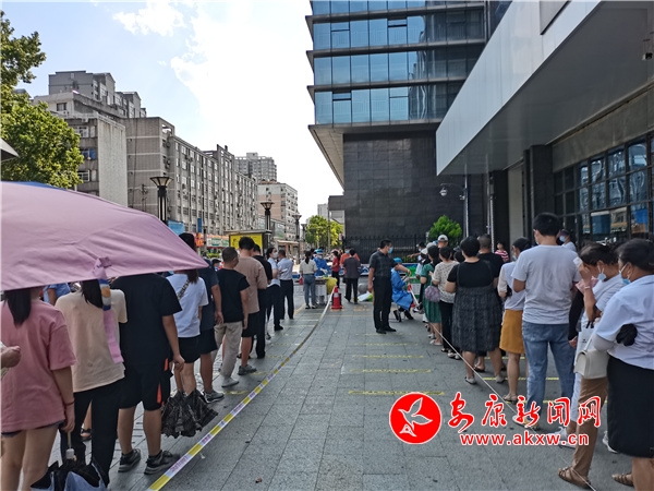 按照全市新冠肺炎疫情防控指揮部的周密部署,8月18日下午,漢濱中心城區(qū)啟動第二次全員核酸檢測工作 。圖為安火路社區(qū)居民在執(zhí)勤民警、醫(yī)務(wù)人員、社區(qū)工作者和志……