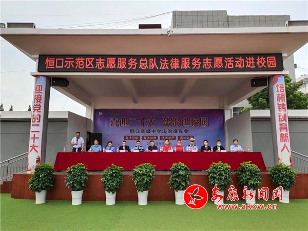 本網(wǎng)訊 為進(jìn)一步增強(qiáng)學(xué)生的法治觀念,提高個(gè)人安全防護(hù)意識(shí),增強(qiáng)自我保護(hù)能力,有效預(yù)防青少年違法犯罪,避免人身意外傷害事故發(fā)生,9月22日下午,恒口高級(jí)中學(xué)在學(xué)校操場舉行新學(xué)年法治報(bào)告會(huì),恒口司法所、恒口交警大隊(duì)、恒口法庭、恒口派出所、示范區(qū)衛(wèi)健局、漢濱區(qū)檢察院恒口檢察室等部門負(fù)責(zé)人或代表分別做了主題報(bào)告,全校近2100余名師生聆聽了報(bào)告。