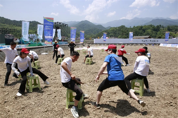 據(jù)悉,本次活動(dòng)舉辦地分別為溪映明月·南山云見片區(qū)和民族風(fēng)情·運(yùn)動(dòng)休閑片區(qū),共開展了“背簍投籃”“稻田摸魚”“田園拔河”等活動(dòng),另有“搶凳子”“跳大繩”等5個(gè)團(tuán)體賽項(xiàng)目吸引了大量群眾參與體驗(yàn)。 “踢毽子”“抓石子”“斗雞、跳繩、抽陀螺”,彰顯農(nóng)活絕技的“拋秧苗、滾鐵環(huán)、趣味插秧賽”等8個(gè)個(gè)人項(xiàng)目,將田園風(fēng)光里的郊外農(nóng)民趣味運(yùn)動(dòng)會(huì)推向高潮。