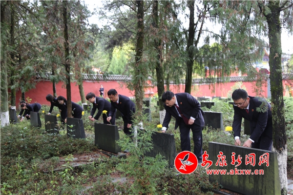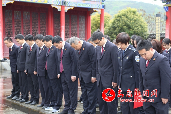 細雨紛紛,在莊嚴凝重的氛圍中,全體干警懷著無比崇敬的心情,來到烈士紀念碑前,鄭重地向為保衛(wèi)、解放平利獻出寶貴生命的革命先烈敬獻花籃、肅立默哀。