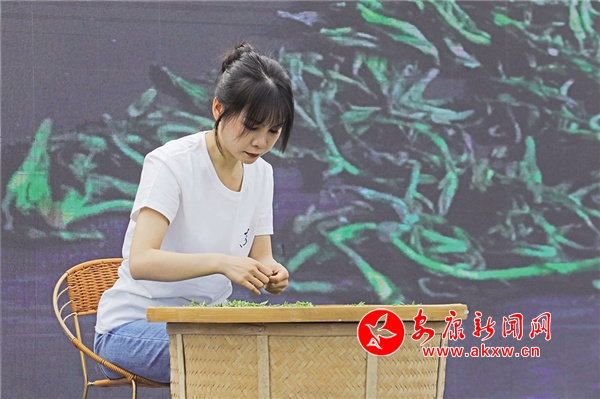 隨著舞蹈《踏春采茶》律動的節(jié)奏響起,活動正式拉開了序幕。背景大屏里,檔山村民們采茶忙的身影錯落有致。鏡頭拉近,一雙雙靈巧的手在茶樹枝丫間上下翻飛,竹簍里的綠芽帶著春天的無限生機饋以村民們豐厚的回報。“我采茶已經(jīng)有5年時間了,每年春天,都會在這個茶園采摘茶葉,一天能采摘4斤左右,一斤茶葉80元,一天下來也能賺個300多元,這個收入在農(nóng)村還算是很不錯的。”帶著滿足的笑容,村民劉新燕掰著手指頭算起了經(jīng)濟賬。