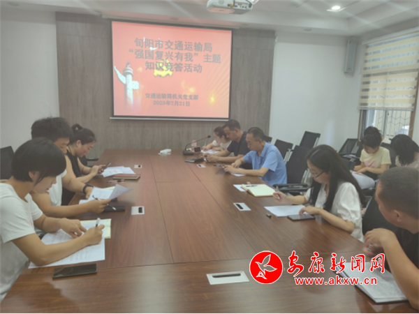 本網(wǎng)訊 為深入學習貫徹黨的二十大精神,深化“強國復興有我”群眾性主題宣傳教育活動,進一步激發(fā)系統(tǒng)黨員群眾愛黨、愛國熱情,教育引導黨員群眾堅定理想信念,凝聚奮進力量,筑牢初心使命;激發(fā)黨員群眾干事創(chuàng)業(yè)激情,牢固樹立高質(zhì)量項目建設(shè)和高品質(zhì)運輸服務“雙高”理念。近日,旬陽市交通運輸局結(jié)合主題黨日活動,突擊組織機關(guān)30余名黨員干部開展“強國復興有我”主題宣傳教育知識競答活動。