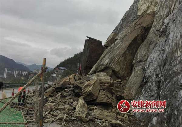 瀛湖干道K1+050處為高危邊坡路段,經(jīng)常發(fā)生山體滑塌及落石,前段時(shí)間我段正采用工程手段對(duì)坡面進(jìn)行卸載危巖清理,清理中也曾發(fā)生過(guò)大的滑塌,前幾天的連陰雨又造成邊坡疏松從而再次滑塌,近期我段還要進(jìn)一步對(duì)此邊坡進(jìn)行卸載清理,全面排除道路安全隱患,確保道路通行安全。