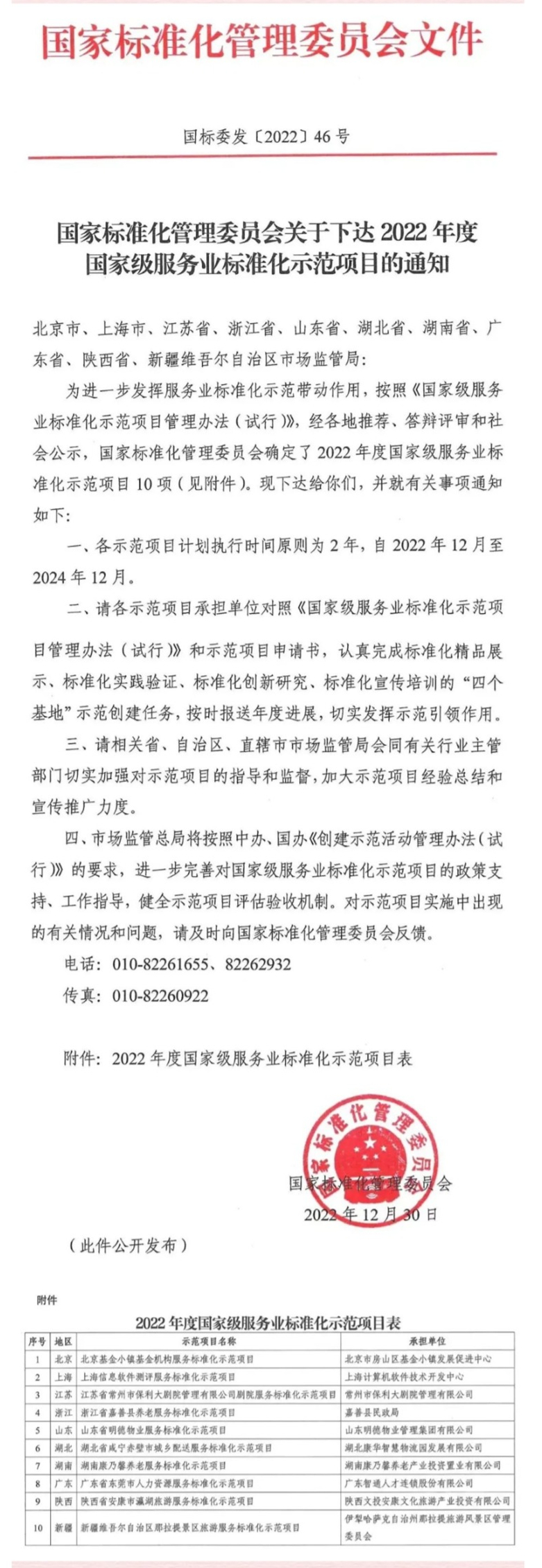 2022年12月30日,國家標(biāo)準(zhǔn)化管理委員會下達全國十個國家級服務(wù)業(yè)標(biāo)準(zhǔn)化示范項目,“陜西省安康市瀛湖旅游標(biāo)準(zhǔn)化示范項目”,經(jīng)過資審、文審、選拔、答辯、公示等程序,從全國一百余家單位中脫穎而出、光榮上榜,成為陜西省第一個國家級旅游標(biāo)準(zhǔn)化示范項目。