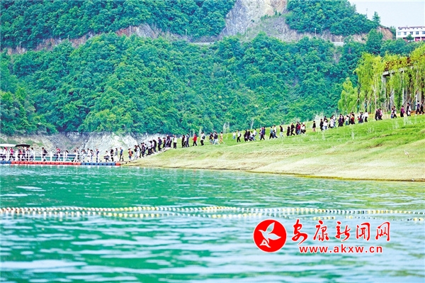 游客抵達瀛湖景區(qū),在工作人員的疏導(dǎo)下,有序登船,穿好救生衣后,向著碧波漣漪、白云萬里進發(fā),這樣游湖,就是一幅絕美的畫卷。
