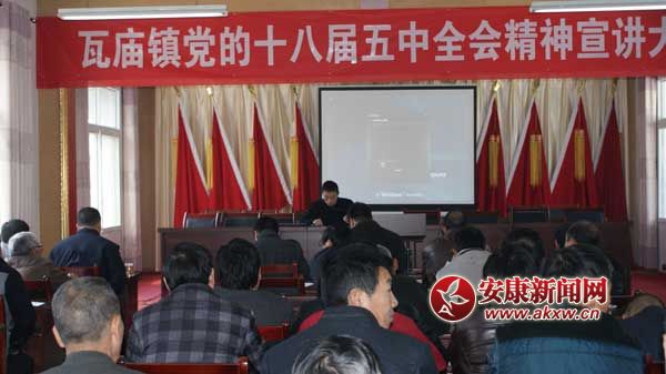 安康新聞網(wǎng)訊 (通訊員 周洪波 張景凡) 為深入學(xué)習(xí)宣傳貫徹黨的十八屆五中全會(huì)精神,切實(shí)把廣大干部群眾的思想和行動(dòng)統(tǒng)一到全面深化改革的決策部署上來,近日,瓦廟鎮(zhèn)召開黨的十八屆五中全會(huì)精神宣講大會(huì),鎮(zhèn)、村全體干部及駐鎮(zhèn)單位負(fù)責(zé)人共計(jì)85參會(huì)。