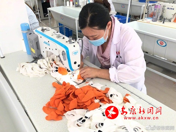 紫陽縣毛壩鎮(zhèn)利用建設(shè)安置點(diǎn)形成的空閑場(chǎng)地,于2018年9月從江蘇省揚(yáng)州市引進(jìn)迪鑫玩具工廠,從事毛絨玩具生產(chǎn)加工。工廠里的員工大多都是毛壩鎮(zhèn)移民安置點(diǎn)的群眾,他們?cè)诩议T口實(shí)現(xiàn)了就業(yè)夢(mèng),而對(duì)于一些貧困戶而言,更是實(shí)現(xiàn)了足不出戶的就業(yè)夢(mèng)。據(jù)了解,毛壩鎮(zhèn)染溝村六組貧困戶杜孝彩,丈夫在廣州電子廠務(wù)工,三個(gè)女兒還在上學(xué),其中,大女兒剛參加完高考并以595分被陜西師范大學(xué)錄取,杜孝彩的三個(gè)女兒,利用暑假在家和母親一起承接毛絨玩具手工活,補(bǔ)貼家庭日常開支。