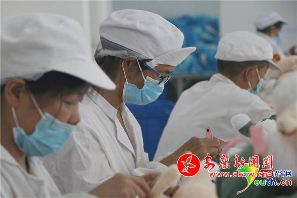 玩具廠還吸納了11名男性村民投身毛絨玩具生產(chǎn)加工。中國青年網(wǎng)記者 張博 攝