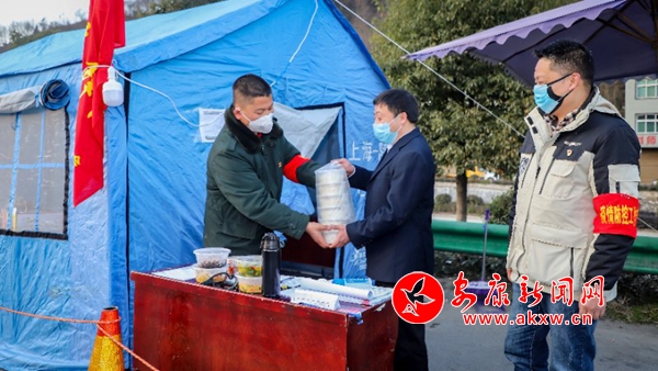 然而在高速路口、310省道兩個防控檢查站工作人員,每天24小時不間斷值守,就餐吃飯成了難題。蒿坪喬家大院負(fù)責(zé)人常紅女士和青松餐飲負(fù)責(zé)人王青松得知這一情況后,主動請纓免費(fèi)為疫情防控點(diǎn)值班的工作人員送愛心餐。由于疫情防控期間,炒菜師傅和服務(wù)員都沒上班,他們就自己采購食材,烹飪親自上手,每天精心制作四十余份飯菜,分裝打包后又開車送往兩個檢查站,從檢查站設(shè)立至今,兩家餐飲共為檢查站提供1000多份愛心餐。