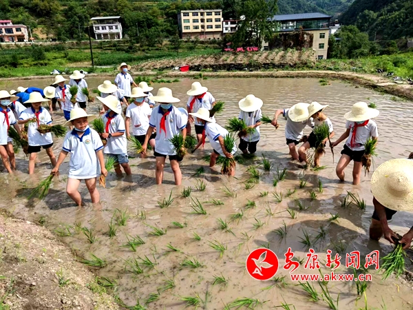 本網(wǎng)訊(通訊員 牟楓 劉成軍)6月7日,紫陽(yáng)縣高橋鎮(zhèn)中心小學(xué)392名學(xué)生在老師的帶領(lǐng)下,伴隨著初夏氣息,嗅著撲鼻的泥土芳香,整齊有序地來(lái)到該縣夢(mèng)紫陽(yáng)中小學(xué)勞動(dòng)實(shí)踐基地,開展“知農(nóng)事,學(xué)農(nóng)耕,惜農(nóng)食”插秧勞動(dòng)實(shí)踐活動(dòng)。
