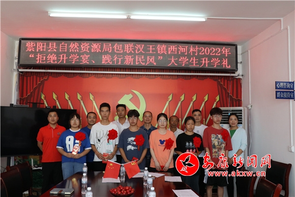 活動后該局聯(lián)合漢王鎮(zhèn)政府、村黨支部,以“拒絕升學宴、踐行新民風”為主題開展“主題黨日”活動,為西河村準6名大學生舉辦集體升學禮,該活動得到了陜西核工業(yè)工程勘察院有限公司和紫陽縣凱翔建筑工程有限公司共計2萬元愛心捐助,主要用于特殊家庭幫扶、新入學大學生獎勵和西河村人居環(huán)境整治改善。通過多途徑、多形式解決群眾“急、難、愁、盼”問題,共同助力鄉(xiāng)村振興工作。