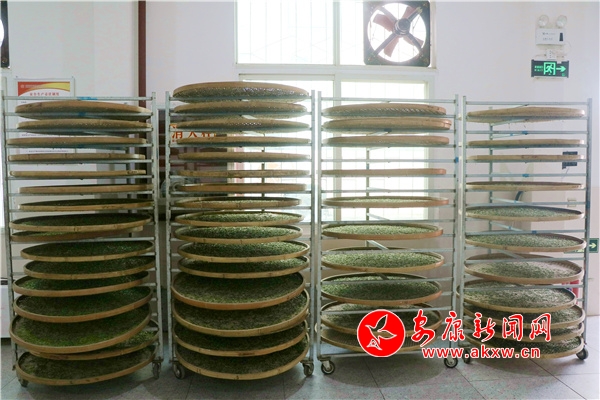 與此同時(shí),洄水鎮(zhèn)境內(nèi)的數(shù)十家茶企(廠)也在加班加點(diǎn)趕制明前茶。在科宏茶業(yè)有限公司生產(chǎn)車間,制茶師傅有條不紊地操作著專業(yè)化設(shè)備,按照殺青、揉捻、烘焙等流程制作新茶,濃郁的茶香彌漫整個(gè)車間。殺青機(jī)、揉捻機(jī)、烘干機(jī)等機(jī)械代替了傳統(tǒng)手工,生產(chǎn)效率更高,茶葉品質(zhì)也更加穩(wěn)定。