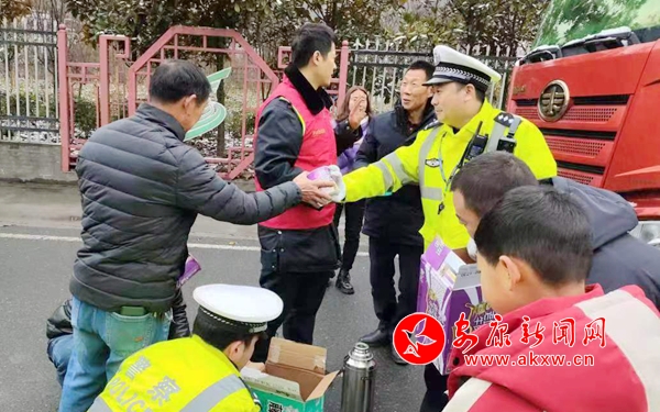 2月20日晚,紫陽縣又迎來了一次降雪天氣,氣溫驟降,轄區(qū)路面迅速積雪結(jié)冰。為最大限度預(yù)防和減少交通事故發(fā)生,確保群眾出行安全和道路平安暢通,紫陽縣公安局交警大隊(duì)統(tǒng)一指揮部署,迅速安排所有警力上路開展交通巡查,加大路面管控力度,強(qiáng)化指揮疏導(dǎo),確保轄區(qū)道路交通秩序的安全、有序、暢通。2月21日11時(shí)許,因滯留車輛較多,交警大隊(duì)聯(lián)合高速收費(fèi)站工作人員向滯留附近的司乘人員“送來熱水、泡面”讓各位駕乘人員感受到紫陽交警的濃濃暖意,舒緩駕乘人員旅途滯留的焦慮情緒,同時(shí)提醒駕駛?cè)思皶r(shí)關(guān)注天氣情況和路況信息,確保行車安全。