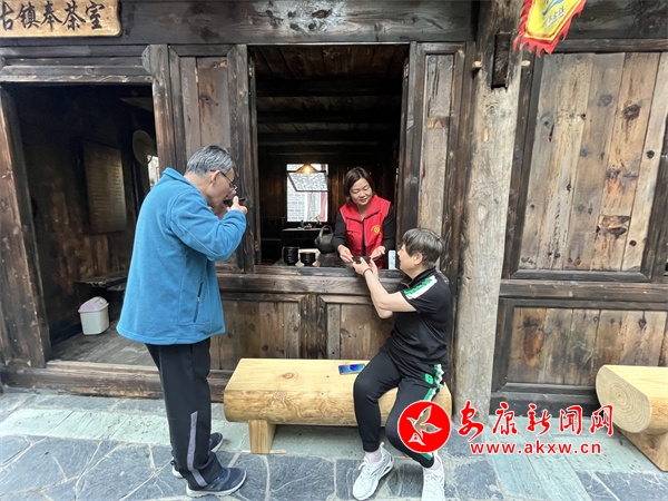 “三月的那個三來,上茶那個山呀......”行走在古鎮(zhèn)老街,一首悠揚悅耳的歌聲撲面而來,走進古鎮(zhèn)奉茶室,侯大姐滿懷激情,聲音高亢地為游客們演唱著紫陽民歌《三月三上茶山》,這已經(jīng)是她今天早上接待的第三批游客了,但絲毫看不出她臉上的倦怠。街道社區(qū)居民侯服琴,秉著對民歌文化和社區(qū)工作的熱愛,長期致力于古鎮(zhèn)奉茶室義務(wù)接待工作,為游客演唱傳統(tǒng)紫陽民歌。“現(xiàn)在來煥古旅游的人越來越多,紫陽民歌是紫陽的傳統(tǒng)文化,我們有義務(wù)傳承和發(fā)揚它,讓更多外地游客們都知道紫陽民歌、愛上紫陽民歌,愛上煥古這個好地方。”侯服琴樂呵呵地說道。在今年紫陽縣“茶山放歌 聲動紫陽”民歌賽暨陜南民歌選拔比賽中,侯服琴更是用高亢嘹亮、動聽淳樸的歌聲斬獲了二等獎的優(yōu)異成績。