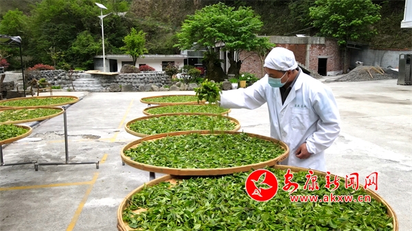 4月28日,紫陽(yáng)壹封天葉茶業(yè)有限公司技術(shù)人員正在對(duì)采摘回來(lái)的古茶樹鮮葉進(jìn)行攤晾。通訊員 儲(chǔ)茂銀攝
