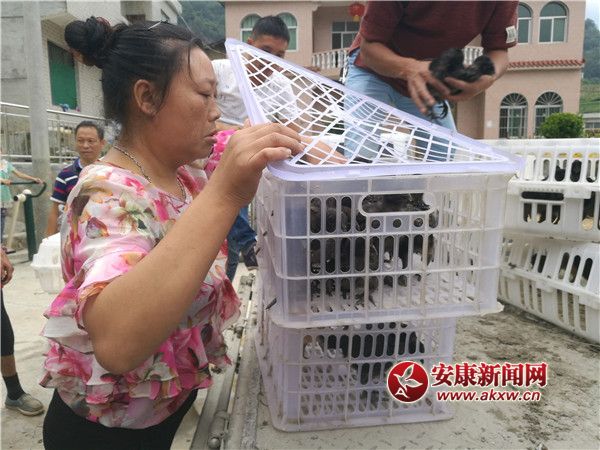 紫陽縣紅椿鎮(zhèn)社區(qū)工廠免費向貧困戶發(fā)放雞苗