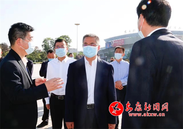 王浩(左三)一行在金州廣場核酸檢測采樣點(diǎn)檢查中心城區(qū)重點(diǎn)人群全員核酸檢測開展情況