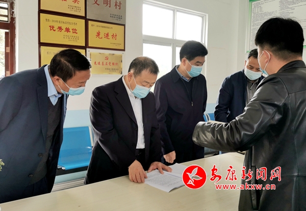 市長武文罡(左二)在嵐皋縣民主鎮(zhèn)新喜村村委會檢查脫貧攻堅成果鞏固情況