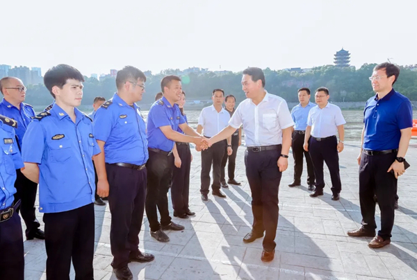 在安康龍舟文化園,趙俊民督導漢江禁洗工作,看望漢江中心城區(qū)段環(huán)境保護工作人員,并送去防暑降溫慰問品,叮囑他們在開展河道洗滌勸導活動的同時,注意防暑降溫、保重身體。