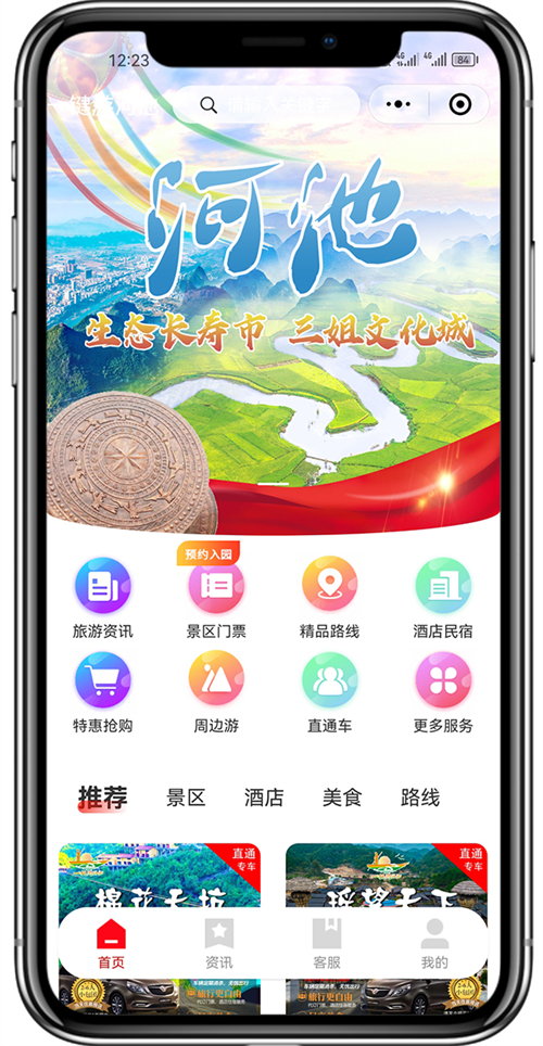 (3)連接“一鍵游河池”小程序,積極對接“一鍵游廣西”平臺,完善“吃、住、行、游、購、娛”功能。