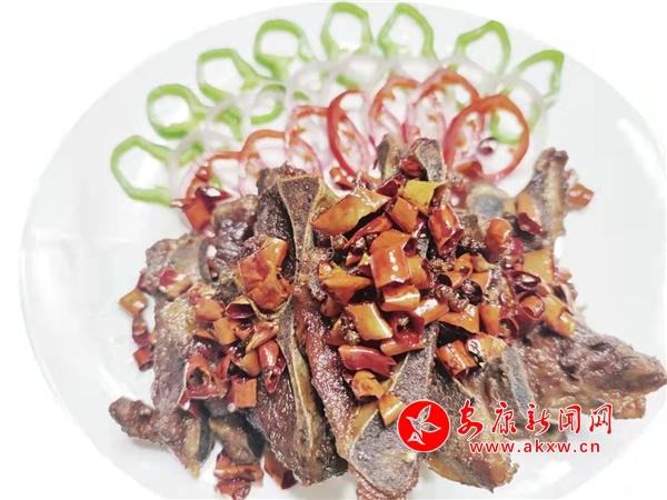推薦理由:端上桌時,就感覺這道菜十分有排面。選用豬的肩胛骨做成的香爆熱菜,僅從視覺上就給人一種滿足感。堆成小山一樣的扇子骨整齊的碼在盤中,紅色的干辣椒點綴其間,教人垂涎欲滴。附著在骨頭上的肉塊大量多,并不難啃。牙齒稍微一拉扯,麻辣鮮香的肉就被帶入口中,因為經(jīng)過高溫炸制,扇子骨的外面已經(jīng)產(chǎn)生“美拉德反應”,棕褐的色澤和焦香的口感相得益彰,仿佛舌尖跳起一支麻辣勁舞,胃與口腔得到了雙重滿足。