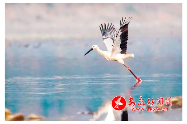 來(lái)自甘肅的父女拍鳥(niǎo)人引人矚目,老人76歲,白發(fā)蒼蒼,精神矍鑠,笑容常開(kāi),女兒五十多歲,健步如飛,父女倆從小就喜歡拍鳥(niǎo),甘肅的山山水水都留下他們的足跡,還自費(fèi)前往黑龍江、遼寧、貴州、西藏等地拍鳥(niǎo),其間的辛苦不言而喻,但拍鳥(niǎo)其樂(lè)無(wú)窮。這次拍攝東方白鸛,父女倆求之不得,他們提前做好功課,由女兒駕車(chē)而來(lái)。在漢江邊、安康湖旁守候了三天三夜,拍攝了兩萬(wàn)余張東方白鸛的姿態(tài),收獲滿滿。當(dāng)?shù)嘏镍B(niǎo)名人薛勤學(xué)、張東風(fēng)、李本增、沈陽(yáng)、陳君威等人,也跟在拍鳥(niǎo)的大隊(duì)伍中,拍攝東方白鸛萬(wàn)余張圖片,把白鸛的起居、覓食、走步、飛翔、嬉戲等美麗瞬間全部定格在鏡頭中,一張半湖清水、半邊藍(lán)天、六只白鸛,在清水和藍(lán)天間起舞的照片,讓人們贊嘆不絕,這些照片或者視頻,用抖音等視頻平臺(tái)向外推送,提高了安康湖的知名度和美譽(yù)度。一位四川的拍鳥(niǎo)人臨走時(shí)這樣說(shuō):“漢江和安康湖良好的水域生態(tài)為鳥(niǎo)類(lèi)提供了適宜繁衍生息的環(huán)境,鳥(niǎo)兒也為漢江、安康湖平添了無(wú)盡的活力與生機(jī)。”