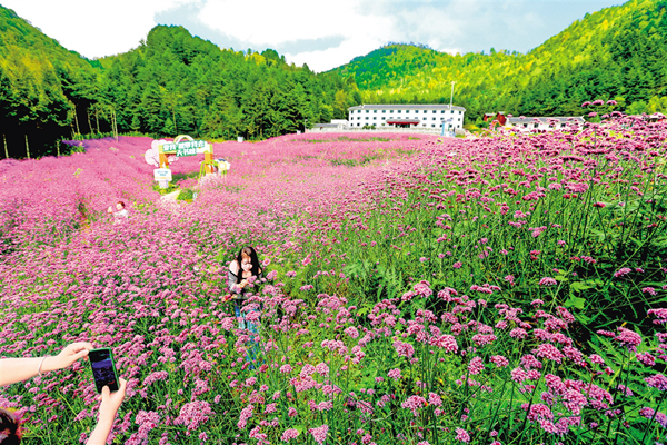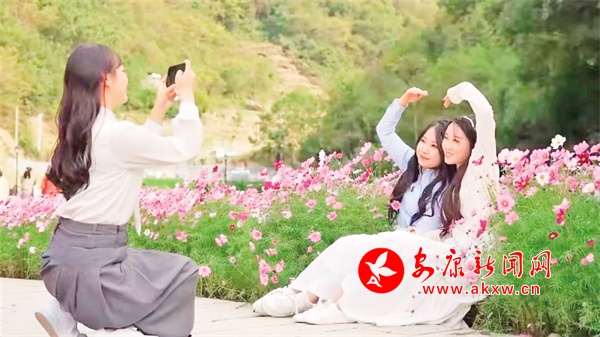 相映成趣游人如織金秋時(shí)節(jié),在白河縣構(gòu)朳鎮(zhèn)廟山寨花海產(chǎn)業(yè)園,盛開的格;ㄔ陲L(fēng)中搖曳。游客漫步在路上,心緒隨著搖曳的格桑花一同起伏,沉浸在秋日的寧?kù)o與美好……