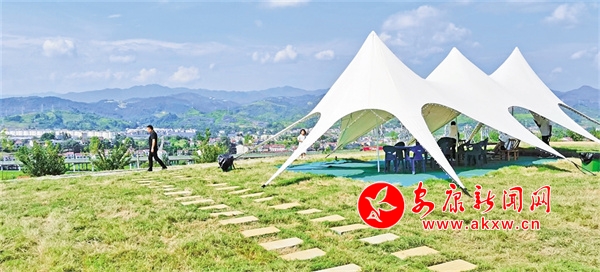 當(dāng)我賞罷一馬平川的恒口貢米基地,邁步田園后面的緩坡,走過(guò)以“稻夢(mèng)時(shí)光”統(tǒng)一冠名的彩虹路、孝義文化長(zhǎng)廊、研學(xué)基地、民宿群落,來(lái)到土坡頂臺(tái)上的這塊綠地,目……