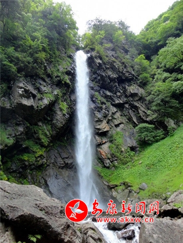 距韓婆瀑布不遠的一條河岔上游,另一個瀑布正等著著我們?nèi)ヒ欢盟姆甲?mdash;—彩虹瀑布。彩虹瀑布比起韓婆瀑布更有姿態(tài),也非任何人都可以見到。因彩虹瀑布位于海拔1400余米的高山之頂。我和好友一行在曲折的羊腸山道上艱難的爬行了一個半小時左右,才隱約聽到陣陣轟鳴傳來,越過阻擋視線的山巖,便看到一道數(shù)十丈高的瀑布懸掛在山梁之上,宛若一條飛龍于懸崖峭壁之間奔馳而下,水柱撞擊潭面散開,變成一團一團的飛沫,正值正午十分,陽光照在水汽彌漫的潭上,瀑布周圍顯出道道七色彩虹,我想彩虹瀑布也正因此而得名吧。天高云淡,加上山崖高聳夾出的邊框,在清風的吹拂下,瀑布顯得分外清澈特別。若當年李白來到了此地 “飛流直下三千尺,疑是銀河落九天”定當為彩虹瀑布而歌。
