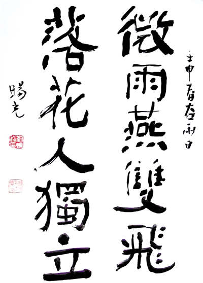 微雨燕雙飛 落花人獨立