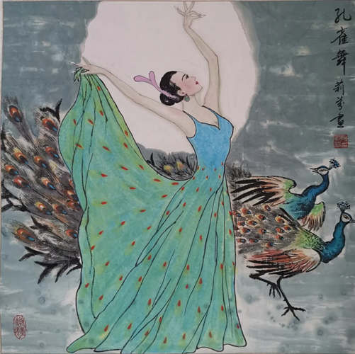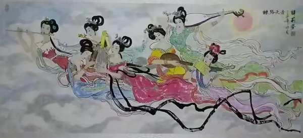 解大姐是陜北人,性格開朗、直率,說話中間或帶出一些濃重的陜北口音。雖說她主業(yè)從于政界,但她微笑的背后卻潛藏著不可掩飾的藝術(shù)天賦,揮發(fā)著令人奪目的藝術(shù)才情。繁雜的政務(wù)工作之余,她創(chuàng)作不輟,堅持不懈,居然在多個藝術(shù)門類收獲頗豐,好評連連。寫小說,她寫出幾十萬字的長篇出版發(fā)行;寫劇本,竟拍成了電影予以公映;學(xué)國畫,亦讓藝術(shù)界的大咖贊口不絕。我雖不才,空有浮名,但深耕藝界多年,對于其中的好賴還能分出一二。我感到,一個人的人品和藝品基本一致,解大姐的藝術(shù),是扎根于她熟悉的陜北大地的藝術(shù),是生長在山峁峁上經(jīng)歷風(fēng)霜雨雪的藝術(shù),就像那陜北倔強(qiáng)的疙瘩柳,散發(fā)著對土地對生活的親近和熱情,對人生價值實(shí)現(xiàn)的不屈和追求?吹剿膰嬓伦,有陜北剪紙等民間藝術(shù)的滋養(yǎng)和影響,真切而樸實(shí)。她的飛天人物系列,泥古而不落窠臼,使我想到疙瘩柳條隨風(fēng)擺動的婀娜風(fēng)姿,溫溫潤潤,令人遐思和向往;她的花鳥畫作,使我想到陜北山野一片蒼茫之間,一朵兩朵盛開的山丹丹花,嬌艷得令人不忍觸手;她的山水畫作,又猶如陜北山原上嫩黃的棗花,洋溢著撲面而來的質(zhì)樸、清新和率真之氣。