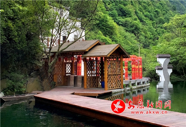 依山就勢(shì)的亭臺(tái)軒榭,與古木巉巖相得益彰,恰似保留了原始風(fēng)貌的古典園林。林木茂盛,目光從葉脈的縫隙間透過去,便會(huì)發(fā)現(xiàn),天地似在一灣水流里合二為一,邂逅的如此絕配。