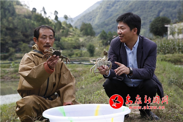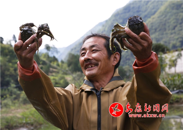金秋時節(jié),秦巴處處穰穰滿家。進(jìn)入漢濱區(qū)茨溝鎮(zhèn)營盤埡村水產(chǎn)養(yǎng)殖基地,蟹農(nóng)游石平正忙著下地籠挑選螃蟹,送往安康、西安等市場銷售。2018年,游石平在營盤埡村流轉(zhuǎn)20多畝水田養(yǎng)殖大閘蟹,平均每畝養(yǎng)殖水面產(chǎn)蟹500斤,每斤60元,今年收入有望達(dá)到60萬元。Kzx安康新聞網(wǎng)
